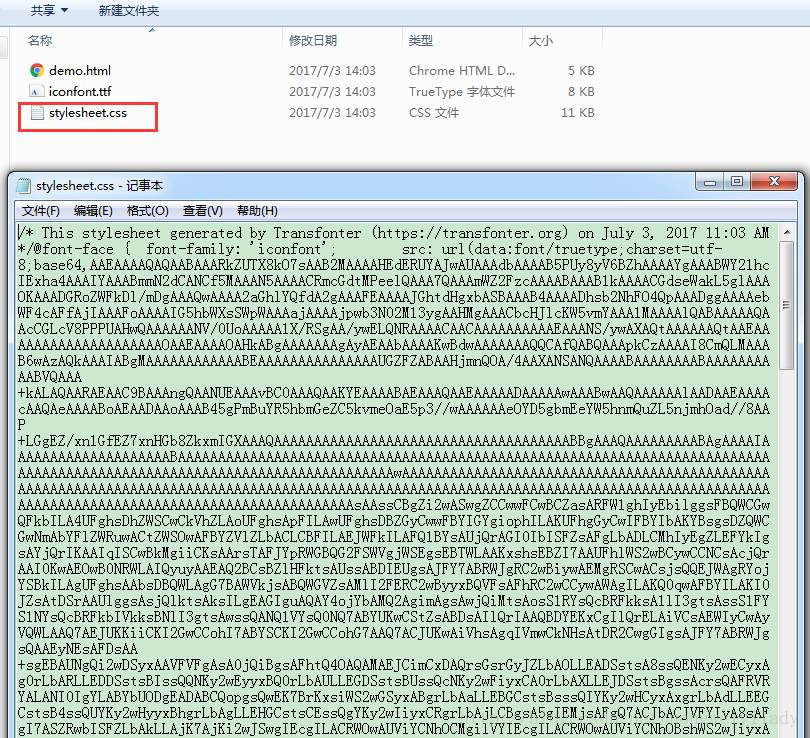 點擊下載,得到轉換后的壓縮包,名為transfonter.org-開頭。解壓可以得到如下圖的幾個文件: