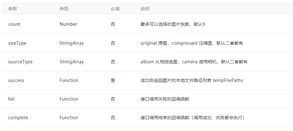小程序上傳圖片要先了解他其中的各個屬性值,在https://developers.weixin.qq.com/miniprogram/dev/api/media-picture.html內有詳細的介紹